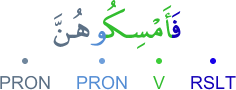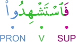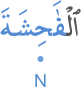 [] [ÆTY] [FḪŞ] [] [NSW] [ŞHD̃] [] [RBA] [] [] [ŞHD̃] [MSK] [] [BYT] [] [WFY] [MWT] [] [CAL] [] [] [SBL] WÆLLÆTY YǼTYN ÆLFÆḪŞT MN NSÆÙKM FÆSTŞHD̃WÆ ALYHN ǼRBAT MNKM FÎN ŞHD̃WÆ FǼMSKWHN FY ÆLBYWT ḪT YTWFÆHN ÆLMWT ǼW YCAL ÆLLH LHN SBYLÆ vellātī ye'tīne l-fāHişete min nisāikum festeşhidū ǎleyhinne erbeǎten minkum fe in şehidū feemsikūhunne fī l-buyūti Hattā yeteveffāhunne l-mevtu ev yec'ǎle llahu lehunne sebīlen واللاتي يأتين الفاحشة من نسائكم فاستشهدوا عليهن أربعة منكم فإن شهدوا فأمسكوهن في البيوت حتى يتوفاهن الموت أو يجعل الله لهن سبيلا [] [ا ت ي] [ف ح ش] [] [ن س و] [ش ه د] [] [ر ب ع] [] [] [ش ه د] [م س ك] [] [ب ي ت] [] [و ف ي] [م و ت] [] [ج ع ل] [] [] [س ب ل]