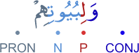CONJ – prefixed conjunction wa (and) P – prefixed preposition lām N – genitive masculine plural noun PRON – 3rd person masculine plural possessive pronoun الواو عاطفة جار ومجرور و«هم» ضمير متصل في محل جر بالاضافة
