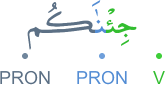 [] [CYÆ] [ḪGG] [] [KS̃R] [ḪGG] [KRH] LGD̃ CÙNÆKM BÆLḪG WLKN ǼKS̃RKM LLḪG KÆRHWN leḳad ci'nākum bil-Haḳḳi velākinne ekṧerakum lilHaḳḳi kārihūne لقد جئناكم بالحق ولكن أكثركم للحق كارهون [] [ج ي ا] [ح ق ق] [] [ك ث ر] [ح ق ق] [ك ر ه]