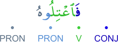 CONJ – prefixed conjunction fa (and) V – 2nd person masculine plural imperative verb PRON – subject pronoun PRON – 3rd person masculine singular object pronoun الفاء عاطفة فعل أمر والواو ضمير متصل في محل رفع فاعل والهاء ضمير متصل في محل نصب مفعول به