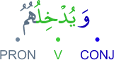 CONJ – prefixed conjunction wa (and) V – 3rd person masculine singular (form IV) imperfect verb PRON – 3rd person masculine plural object pronoun الواو عاطفة فعل مضارع و«هم» ضمير متصل في محل نصب مفعول به