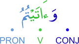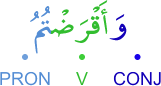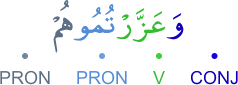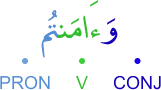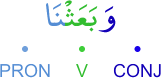 CONJ – prefixed conjunction wa (and) V – 1st person plural perfect verb PRON – subject pronoun الواو عاطفة فعل ماض و«نا» ضمير متصل في محل رفع فاعل