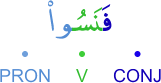 [] [] [GWL] [] [NṦR] [ÆḢZ̃] [WS̃G] [NSY] [ḪƵƵ] [] [Z̃KR] [] [ĞRW] [BYN] [AD̃W] [BĞŽ] [] [YWM] [GWM] [] [NBÆ] [] [] [KWN] [ṦNA] WMN ÆLZ̃YN GÆLWÆ ÎNÆ NṦÆR ǼḢZ̃NÆ MYS̃ÆGHM FNSWÆ ḪƵÆ MMÆ Z̃KRWÆ BH FǼĞRYNÆ BYNHM ÆLAD̃ÆWT WÆLBĞŽÆÙ ÎL YWM ÆLGYÆMT WSWF YNBÙHM ÆLLH BMÆ KÆNWÆ YṦNAWN ve mine elleƶīne ḳālū innā neSārā eḣaƶnā mīṧāḳahum fenesū HaZZen mimmā ƶukkirū bihi feeğraynā beynehumu l-ǎdāvete velbeğDā'e ilā yevmi l-ḳiyāmeti ve sevfe yunebbiuhumu llahu bimā kānū yeSneǔne ومن الذين قالوا إنا نصارى أخذنا ميثاقهم فنسوا حظا مما ذكروا به فأغرينا بينهم العداوة والبغضاء إلى يوم القيامة وسوف ينبئهم الله بما كانوا يصنعون [] [] [ق و ل] [] [ن ص ر] [ا خ ذ ] [و ث ق] [ن س ي] [ح ظ ظ] [] [ذ ك ر] [] [غ ر و] [ب ي ن] [ع د و] [ب غ ض] [] [ي و م] [ق و م] [] [ن ب ا] [] [] [ك و ن] [ص ن ع]