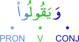 CONJ – prefixed conjunction wa (and) V – 3rd person masculine plural imperfect verb, subjunctive mood PRON – subject pronoun الواو عاطفة فعل مضارع منصوب والواو ضمير متصل في محل رفع فاعل