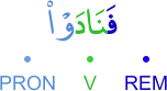 REM – prefixed resumption particle V – 3rd person masculine plural (form III) perfect verb PRON – subject pronoun الفاء استئنافية فعل ماض والواو ضمير متصل في محل رفع فاعل