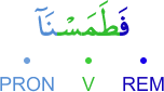 REM – prefixed resumption particle V – 1st person plural perfect verb PRON – subject pronoun الفاء استئنافية فعل ماض و«نا» ضمير متصل في محل رفع فاعل