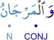 YḢRC MNHMÆ ÆLLÙLÙ WÆLMRCÆN yeḣrucu minhumā l-lu'lu'u velmercānu يَخْرُجُ مِنْهُمَا اللُّؤْلُؤُ وَالْمَرْجَانُ