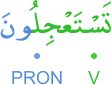 [GWL] [] [] [BYN] [] [RBB] [KZ̃B] [] [] [AND̃] [] [ACL] [] [] [ḪKM] [] [] [GṦṦ] [ḪGG] [] [ḢYR] [FṦL] GL ÎNY AL BYNT MN RBY WKZ̃BTM BH MÆ AND̃Y MÆ TSTACLWN BH ÎN ÆLḪKM ÎLÆ LLH YGṦ ÆLḪG WHW ḢYR ÆLFÆṦLYN ḳul innī ǎlā beyyinetin min rabbī vekeƶƶebtum bihi mā ǐndī mā testeǎ'cilūne bihi ini l-Hukmu illā lillahi yeḳuSSu l-Haḳḳa ve huve ḣayru l-fāSilīne قل إني على بينة من ربي وكذبتم به ما عندي ما تستعجلون به إن الحكم إلا لله يقص الحق وهو خير الفاصلين [ق و ل] [] [] [ب ي ن] [] [ر ب ب] [ك ذ ب] [] [] [ع ن د] [] [ع ج ل] [] [] [ح ك م] [] [] [ق ص ص] [ح ق ق] [] [خ ي ر] [ف ص ل]