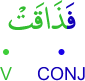 [Z̃WG] [WBL] [ÆMR] [KWN] [AGB] [ÆMR] [ḢSR] FZ̃ÆGT WBÆL ǼMRHÆ WKÆN AÆGBT ǼMRHÆ ḢSRÆ feƶāḳat vebāle emrihā ve kāne ǎāḳibetu emrihā ḣusran فذاقت وبال أمرها وكان عاقبة أمرها خسرا [ذ و ق] [و ب ل] [ا م ر] [ك و ن] [ع ق ب] [ا م ر] [خ س ر]