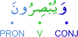 CONJ – prefixed conjunction wa (and) V – 3rd person masculine plural (form IV) imperfect verb PRON – subject pronoun الواو عاطفة فعل مضارع والواو ضمير متصل في محل رفع فاعل