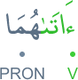 V – 1st person singular (form IV) imperfect verb PRON – 3rd person dual object pronoun فعل مضارع والهاء ضمير متصل في محل نصب مفعول به