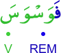 [WSWS] [] [ŞŦN] [BD̃W] [] [] [WRY] [] [] [SWÆ] [GWL] [] [NHY] [RBB] [] [] [ŞCR] [] [] [KWN] [MLK] [] [KWN] [] [ḢLD̃] FWSWS LHMÆ ÆLŞYŦÆN LYBD̃Y LHMÆ MÆ WWRY ANHMÆ MN SW ËTHMÆ WGÆL MÆ NHÆKMÆ RBKMÆ AN HZ̃H ÆLŞCRT ÎLÆ ǼN TKWNÆ MLKYN ǼW TKWNÆ MN ÆLḢÆLD̃YN fevesvese lehumā ş-şeyTānu liyubdiye lehumā mā ve vuriye ǎnhumā min sev'ātihimā ve ḳāle mā nehākumā rabbukumā ǎn hāƶihi ş-şecerati illā en tekūnā melekeyni ev tekūnā mine l-ḣālidīne فوسوس لهما الشيطان ليبدي لهما ما ووري عنهما من سوآتهما وقال ما نهاكما ربكما عن هذه الشجرة إلا أن تكونا ملكين أو تكونا من الخالدين [و س و س] [] [ش ط ن] [ب د و] [] [] [و ر ي] [] [] [س و ا] [ق و ل] [] [ن ه ي] [ر ب ب] [] [] [ش ج ر] [] [] [ك و ن] [م ل ك] [] [ك و ن] [] [خ ل د]