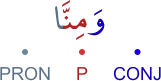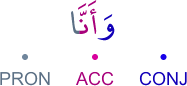 CONJ – prefixed conjunction wa (and) ACC – accusative particle PRON – 1st person plural object pronoun الواو عاطفة حرف نصب من اخوات «ان» و«نا» ضمير متصل في محل نصب اسم «ان»