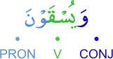 CONJ – prefixed conjunction wa (and) V – 3rd person masculine plural (form IV) passive imperfect verb PRON – subject pronoun الواو عاطفة فعل مضارع مبني للمجهول والواو ضمير متصل في محل رفع نائب فاعل
