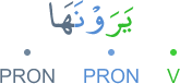 [] [YWM] [RÆY] [] [LBS̃] [] [AŞW] [] [ŽḪW] KǼNHM YWM YRWNHÆ LM YLBS̃WÆ ÎLÆ AŞYT ǼW ŽḪÆHÆ keennehum yevme yeravnehā lem yelbeṧū illā ǎşiyyeten ev DuHāhā كأنهم يوم يرونها لم يلبثوا إلا عشية أو ضحاها [] [ي و م] [ر ا ي] [] [ل ب ث] [] [ع ش و] [] [ض ح و]
