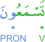 [Y] [EYH] [] [ÆMN] [ŦWA] [] [RSL] [] [WLY] [] [] [SMA] YÆ ǼYHÆ ÆLZ̃YN ËMNWÆ ǼŦYAWÆ ÆLLH WRSWLH WLÆ TWLWÆ ANH WǼNTM TSMAWN yā eyyuhā elleƶīne āmenū eTīǔ llahe ve rasūlehu ve lā tevellev ǎnhu veentum tesmeǔne يا أيها الذين آمنوا أطيعوا الله ورسوله ولا تولوا عنه وأنتم تسمعون [ي] [أ ي ه] [] [ا م ن] [ط و ع] [] [ر س ل] [] [و ل ي] [] [] [س م ع]