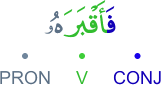 CONJ – prefixed conjunction fa (and) V – 3rd person masculine singular (form IV) perfect verb PRON – 3rd person masculine singular object pronoun الفاء عاطفة فعل ماض والهاء ضمير متصل في محل نصب مفعول به