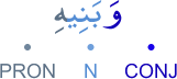 CONJ – prefixed conjunction wa (and) N – genitive masculine plural noun PRON – 3rd person masculine singular possessive pronoun الواو عاطفة اسم مجرور والهاء ضمير متصل في محل جر بالاضافة