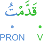 V – 1st person singular (form II) perfect verb PRON – subject pronoun فعل ماض والتاء ضمير متصل في محل رفع فاعل
