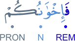 [] [TWB] [GWM] [ṦLW] [ÆTY] [ZKW] [ÆḢW] [] [D̃YN] [FṦL] [ÆYY] [GWM] [ALM] FÎN TÆBWÆ WǼGÆMWÆ ÆLṦLÆT W ËTWÆ ÆLZKÆT FÎḢWÆNKM FY ÆLD̃YN WNFṦL ÆL ËYÆT LGWM YALMWN fein tābū ve eḳāmū S-Salāte ve ātevu z-zekāte feiḣvānukum fī d-dīni ve nufeSSilu l-āyāti liḳavmin yeǎ'lemūne فإن تابوا وأقاموا الصلاة وآتوا الزكاة فإخوانكم في الدين ونفصل الآيات لقوم يعلمون [] [ت و ب] [ق و م] [ص ل و] [ا ت ي] [ز ك و] [ا خ و] [] [د ي ن] [ف ص ل] [ا ي ي] [ق و م] [ع ل م]