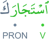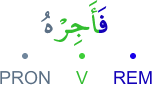 [] [ÆḪD̃] [] [ŞRK] [CWR] [CWR] [] [SMA] [KLM] [] [] [BLĞ] [ÆMN] [] [] [GWM] [] [ALM] WÎN ǼḪD̃ MN ÆLMŞRKYN ÆSTCÆRK FǼCRH ḪT YSMA KLÆM ÆLLH S̃M ǼBLĞH MǼMNH Z̃LK BǼNHM GWM LÆ YALMWN ve in eHadun mine l-muşrikīne stecārake feecirhu Hattā yesmeǎ kelāme llahi ṧumme ebliğhu me'menehu ƶālike biennehum ḳavmun lā yeǎ'lemūne وإن أحد من المشركين استجارك فأجره حتى يسمع كلام الله ثم أبلغه مأمنه ذلك بأنهم قوم لا يعلمون [] [ا ح د] [] [ش ر ك] [ج و ر] [ج و ر] [] [س م ع] [ك ل م] [] [] [ب ل غ] [ا م ن] [] [] [ق و م] [] [ع ل م]