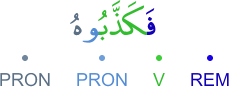 REM – prefixed resumption particle V – 3rd person masculine plural (form II) perfect verb PRON – subject pronoun PRON – 3rd person masculine singular object pronoun الفاء استئنافية فعل ماض والواو ضمير متصل في محل رفع فاعل والهاء ضمير متصل في محل نصب مفعول به