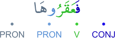 CONJ – prefixed conjunction fa (and) V – 3rd person masculine plural perfect verb PRON – subject pronoun PRON – 3rd person feminine singular object pronoun الفاء عاطفة فعل ماض والواو ضمير متصل في محل رفع فاعل و«ها» ضمير متصل في محل نصب مفعول به
