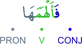 CONJ – prefixed conjunction fa (and) V – 3rd person masculine singular (form IV) perfect verb PRON – 3rd person feminine singular object pronoun الفاء عاطفة فعل ماض و«ها» ضمير متصل في محل نصب مفعول به