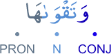 CONJ – prefixed conjunction wa (and) N – accusative masculine noun PRON – 3rd person feminine singular possessive pronoun الواو عاطفة اسم منصوب و«ها» ضمير متصل في محل جر بالاضافة